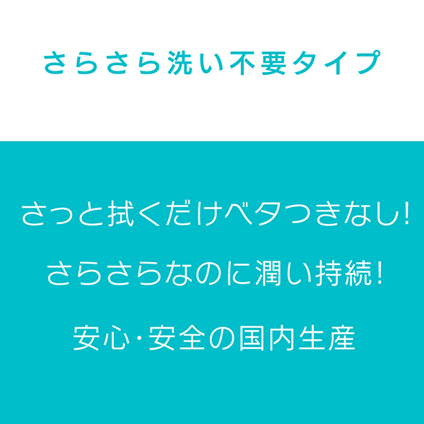 Ag+でエクセレントローションが新しく生まれ変わりました。銀イオン配合で消臭・抗菌・除菌もでき、より衛生的に使用できるようになりました。さらさら洗い不要タイプは、ティッシュでさっと拭くだけでベタつきがありません。また、特別な配合によりさらさらなのに潤いが持続します。容器も使いやすくなりました。ワンタッチキャップは片手で簡単に開閉できますので、プレイ途中の継ぎ足しなどにも便利です。3つ穴ノズルで糸切れ抜群の構造になっています。柔らかボトルで最後まで絞り出せます。空になったボトルは丸めてコンパクトに捨てれます。安心・安全の国内生産です。