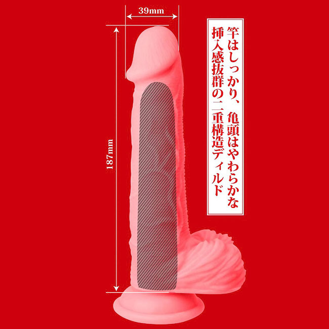 野生を呼び覚ます刺激!しっかりと芯があり、ハリのあるボディ。外側は柔らかな素材で超リアルな肉感!硬めの芯と、柔らかな亀頭・皮のリアル二重構造♪強力吸盤で壁・床に固定可能。ブルは奥まで突けるロングサイズで快感ポルチオ開発♪本体サイズ:18.7×Φ3.9cmパッケージサイズ:21.3×10.0×7.5cm