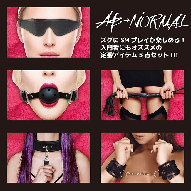 SMの世界へハマる第一歩。スグにSMプレイが楽しめる!入門者にもオススメの定番アイテム5点セット!セット内容:アイマスク、ボールギャグ、リード付き首輪、手枷、バラムチサイズ:フリーサイズパッケージサイズ:31.0×19.0×7.5cm