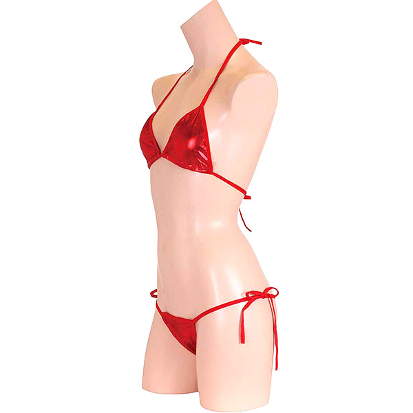 キラキラさせて今っぽくオシャレに目立ちたいならアクティブになれるメタリックビキニセット。リボンでサイズ調整可能。いい女に見えるレッド。