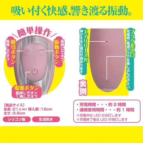 人気AV女優「君島みお」が本気でイッた!!クリトリス吸引が付いた一体型バイブ登場。吸い付く快感、響き渡る振動・・・挿入部の波打つデコボコが、膣をかき乱す。G調教やポルチオ責めもOK!クンニされながらガンガン突かれる様な刺激が楽しめる、君島みおが思わずヨガった吸引バイブをご賞味あれ!本体サイズ:12.0×Φ3.5cm電池:USB充電式パッケージサイズ:23.8×9.0×4.0cm