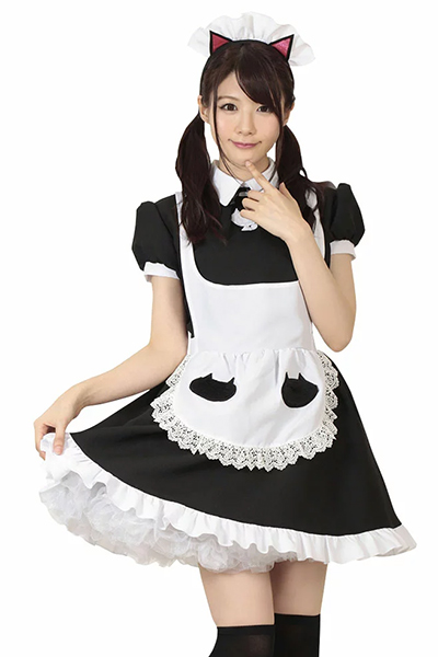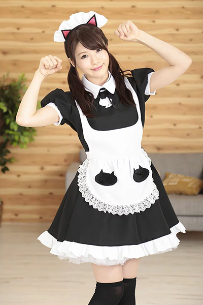 家内安全を招く黒猫を全面に押し出しだした猫型メイド。ショート丈スカートにキュっと絞れるエプロンでスタイルもよく見えちゃうキャット仕様!?セット内容:メイドワンピース、しっぽ、猫耳カチューシャサイズ:Mサイズ、B78-88cm、W58-70cm、H87-95cm