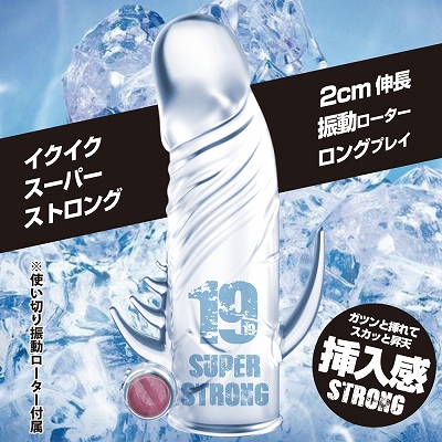 ガツンと挿れてスカッと昇天!イクイクスーパーストロング!!2cm伸長でロングプレイ♪更にモーターの振動でパートナーへの刺激もアップ!伸縮性抜群でジャストフィットの柔らか素材。本体サイズ:13.0電池:交換不可パッケージサイズ:14.0×7.0×5.0cm
