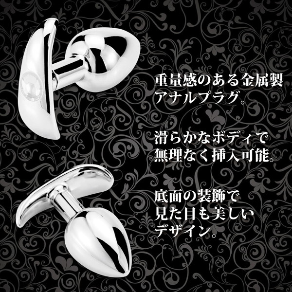 美しい光沢感と重厚感、アナル入門者から楽しめるメタルプラグ!金属製ならではの重量感と完璧な曲線美による挿入感。最大径部分まではググッとアナルが押し拡げられ、ネックに辿り着くとピタッと収まります。全部飲み込んだときの重量感・存在感も格別です!底部分にはクリスタルのワンポイントで美しさも忘れていません!本体サイズ:9.2×Φ4.0cmパッケージサイズ:14.0×10.0×8.0cm