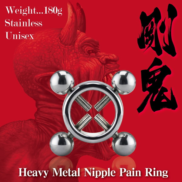 剛撃に悶え狂え!鬼の如き力で締め付け×超重量で責める金属製、調教メタルリング!4方向から乳首をしっかりと挟み込みリングを固定。乳首攻めによる刺激はやがて快感へと変貌してゆく!リング内径:2.9cmパッケージサイズ:10.5×8.5×2.5cm