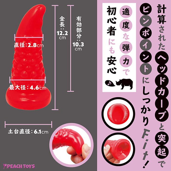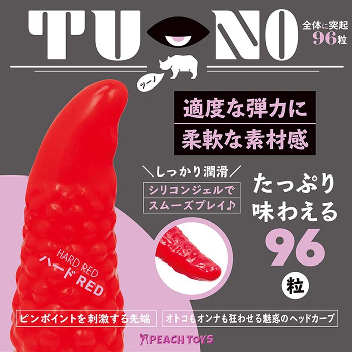 絶妙なヘッドカーブのバックディルド「TU-NO(ツーノ)」の登場です!!計算されたカーブデザインが、お好みのポイントにしっかりFIT!たっぷり味わえる96粒のイボイボが快感を強烈サポート。カッチカチの硬質素材ではなく少し弾力があります。消しゴム程度の硬さのハードRED。本体サイズ:12.3×Φ2.8〜4.6cmパッケージサイズ:24.0×15.0×7.0cm