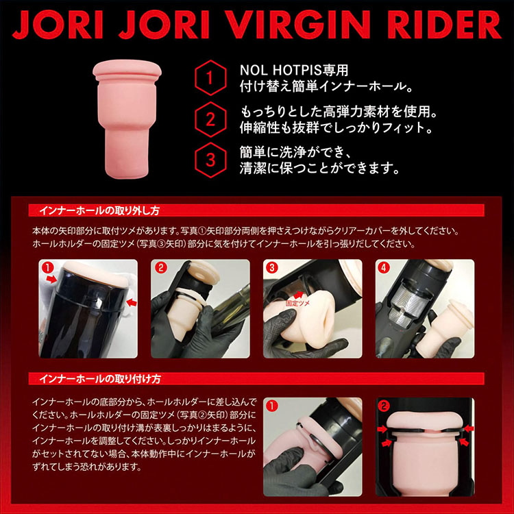 NOL HOTPIS(ノールホッピス)用オナホール。絡みつくジョリジョリは、バージン娘の必死の抵抗。もっちりとした弾力素材が、まとわりつくように刺激する挿入部の幼い秘肉を、無情のマシーンが突き動かす。ピストンを極めた電動オナホール「NOL HOTPIS」交換用ホール第一弾は、抵抗するように締め付ける乙女の深部を再現!※HOTPIS本体は付属しません。本体サイズ:11.5×Φ7.2mパッケージサイズ:18.8×9.7×9.0cm