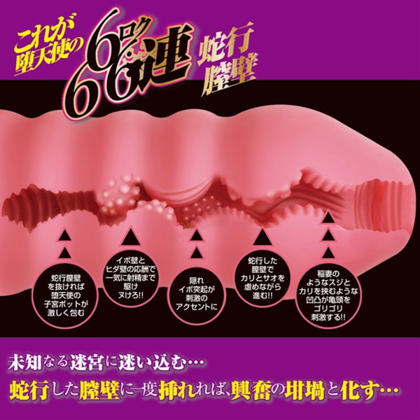 吸淫リリス、衝凸ラミアに続く6連小悪魔シリーズ第3弾!天界から追放された堕天使、カリ責ベリアルが地球に舞い降りる。うねりのある連続した膣壁が、カリを煽りながらゴリゴリ刺激。膣壁を抜ければ堕天使の子宮ポットが亀頭を激しく包む。イボやヒダ、様々な膣壁の応酬で、一気に射精まで駆けヌける!この刺激、天使か?悪魔か?イタズラ堕天使の未熟な変態マ○コを攻略せよ。本体サイズ:14.5×Φ6.2cm重量:290gパッケージサイズ:18.5×12.0×8.0cm