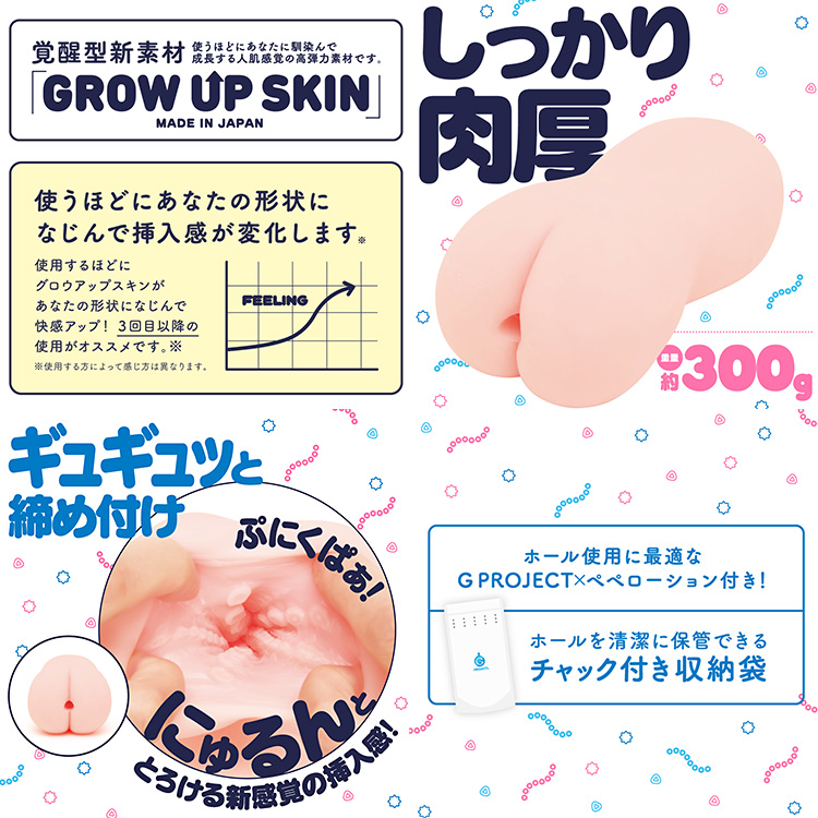 8本の触手には無数の吸盤。異世界を感じさせる魅惑のフォルム。刺身にしても美味しい、煮ても焼いても美味しい。みんなが大好きな、タコ!オナホにしても、きっと気持ちいいに決まってる!そんな考えから誕生しました。しっかり肉厚重量約300g!うねって絡み付く8本のぷにコリタコ足がド直球な刺激を再現!無数のぷにぷに吸盤はとろける快感!ピストンしたり回転させたりすることで刺激のバリエーション無限大!覚醒型素材【GROW UP SKIN】は使うほどにあなたに馴染んで成長する人肌感覚の高弾力素材です。