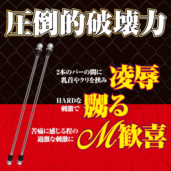 圧倒的破壊力!乳首やクリを挟んで凌辱できる、スティック型SMグッズ。上下に配置された6本のリングをスライドさせ、ジワジワといたぶることが可能。苦痛に感じる程の過激な刺激を思う存分愉しめる。使用時の見た目もインパクトがあり。興奮度120%で相手を嬲れ。※無理のない範囲でご使用ください。※商品特性をご理解のうえ、自己責任でお楽しみください。パッケージサイズ:25.5×11.7×1.4cm
