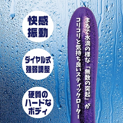 まるで水滴の様な「無数の突起」がコリコリと気持ち良いスティックローター!乳首やクリなどに押し当てればいつも以上の刺激が味わえちゃうかも!?ダイヤル式強弱調整。硬質ハードボディで刺激的な振動を体感ください。本体サイズ:17.3×Φ3.3cmパッケージサイズ:18.0×5.0×3.5cm