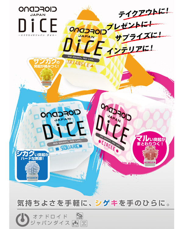 想像を超える創造。オナドロイド!モノづくりを通して、あなたの人生に彩りを添えられるように。期待を、想像を、超えられるモノづくりをコンセプトに誕生した「オナドロイド」。多彩なバリエーションでアナタのオナニーライフをサポートしてくれます。こちらの「ダイス イエロー」は、上下運動に適したディテールが、予想を超えるシャープな使用感を与えてくれます。ローションをたっぷりと塗ってお使いください。テイクアウトに!プレゼントに!サプライズに!インテリアに!あらゆるシーンで活躍してくれるアイテムです。重量:90gパッケージサイズ:6.6×6.6×6.6cm