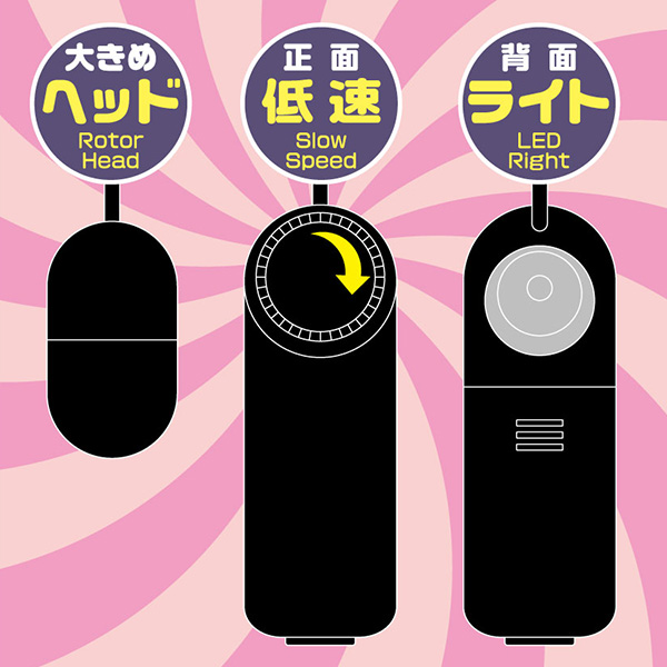 女性が求めている本当の優しさとはこのローターだ!超低速・微振動で快感を与えてくれる!ダイヤル式コントローラーが使いやすく、徐々に振動を強くすることができます。ダイヤルの裏側にはLEDライトを搭載し、、暗闇でも問題なく使用できます。ローターのヘッドが大きめに作られているので、広範囲へ快感を与えられるローターです。ローターサイズ:6.0×Φ3.0cm電池:単4×2本パッケージサイズ:16.0×8.0×5.5cm