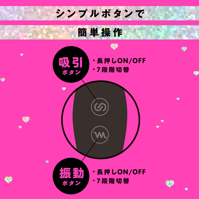 外イキも中イキも叶える2WAY吸引バイブ!7パターン吸引×7パターン振動の全49バリエーション!優しくチュパチュパ吸われる吸引部分は、リアルなクンニのようにあなたを心地よく愛撫します。激しくブルブルと震えるバイブ部分は好きな挿入角度でピタッと固定でき、気持ちいい部分を集中的に刺激できます。サラサラで肌触りもとてもなめらかな高品質マットシリコンを使用。静音設計なので音も気にせず存分に楽しめちゃいます。生活防水機能。本体サイズ:21.0×Φ3.7cm重量:144g電池:USB充電式パッケージサイズ:27.0×11.0×6.0cm