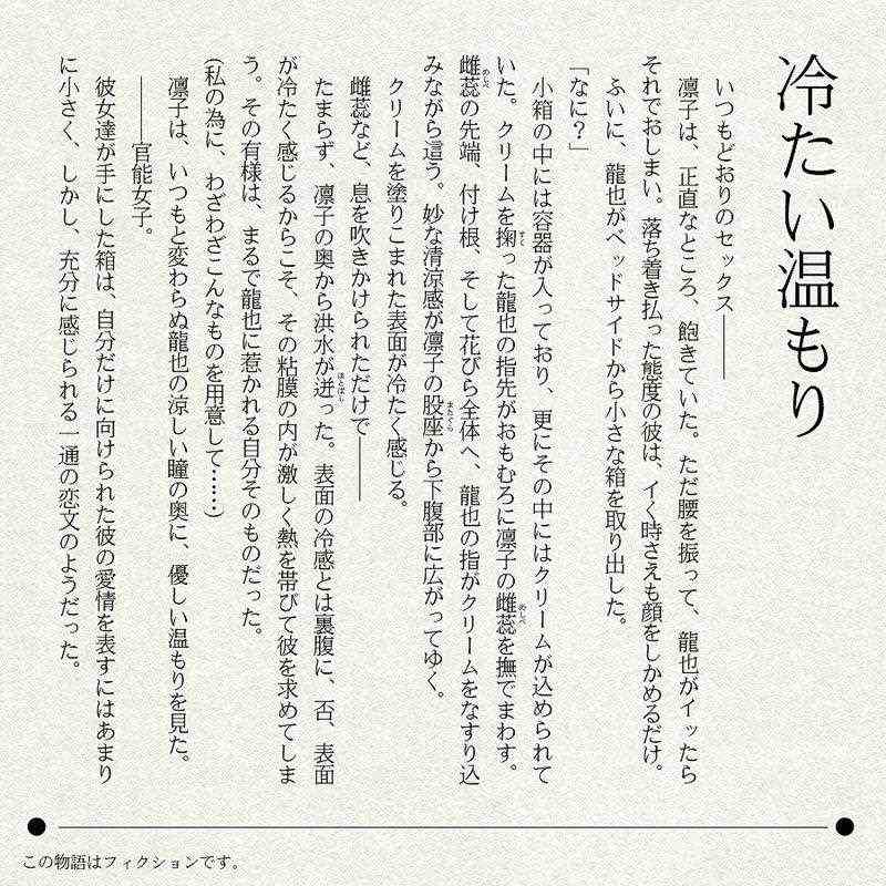 奇跡のリンゴとも言われている不老林檎エキスを配合しました。スースーする成分は天然のローズマリー成分によるものです。官能女子でスースー、ヒクヒクっ。国産で安全な成分のみでできています。官能女子で大きく敏感になった愛の突起、そしてとめどなく溢れ出る愛液・・・。パッケージサイズ:縦2.4×横3.0×奥行3.0cm内容量:5g注:体調や精神状態、個人差などで使用感が変わる場合が御座います。ご使用に関してはご自身の責任でお願いします。