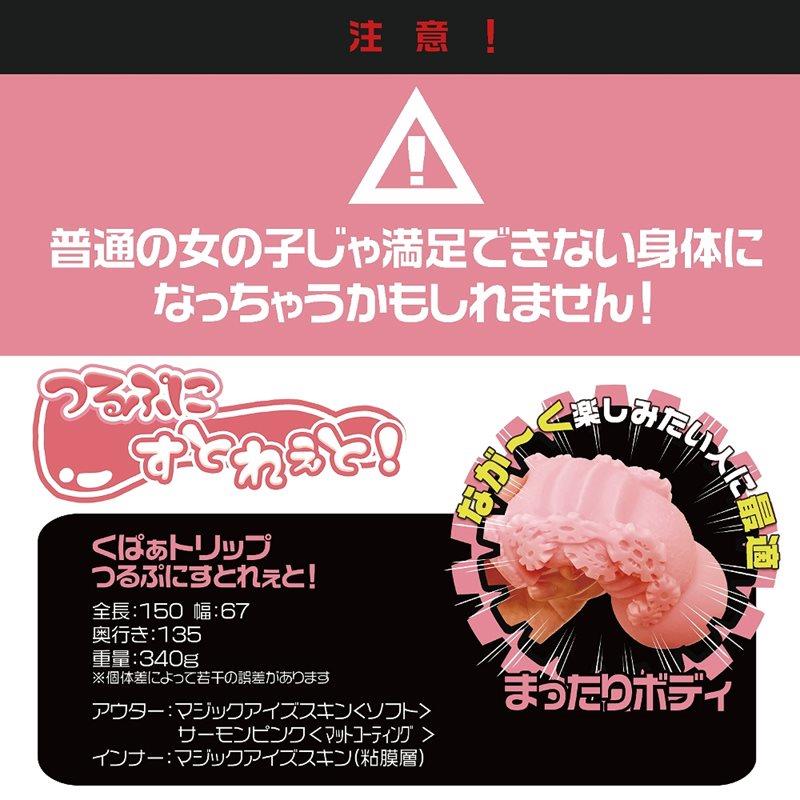 つるつるな膣肉部に最深部のエア抜きを行ってから使用すればまったりとゆっくりなロングプレイが可能な「つるぷにすとれぇと」の登場!ローションが漏れにくく、侵入し易いくぱぁ構造と内部長135mmソフトなMagiceyesSkin(厚生労働省:食品衛生基準370号準拠素材)を採用していますので実用的な仕様になっております。本体全長:15.0 cm 幅:6.7cm重量:340gパッケージサイズ:18.5×10.0×7.7cm