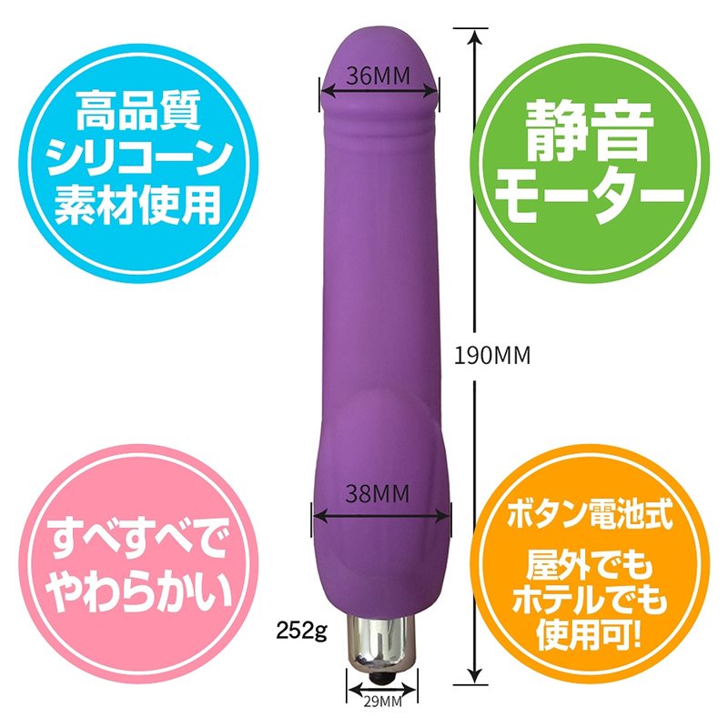 初心者向けの簡単操作で楽しめるディルド型バイブの登場です。ディルド型バイブで臨場感UP!お肌に優しい高品質なシリコーン素材を採用し、すべすべでやわらかな温かみのある肌触りが癖になります。ローターは着脱式の為、取り外してカップルでの使用も可能。ローターを外せば丸洗いも可能です。乾電池で使う場所を選ばず、屋外でもホテルでも使用できます。パッケージサイズ:22.0×7.0×7.4cm本体サイズ:19.0×9.5×3.6cm