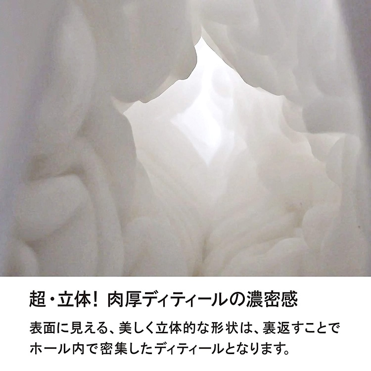 超・立体!肉厚ディテールの濃密感!TENGA GEOの表面を彩る美しく立体的な造形は、裏返すことで密集した内部ディテールへと変化します。ゲル素材を贅沢に使用した超肉厚ディテールによる、濃密な快感をぜひお楽しみください。こちらの「AQUA」は、波打つダイレクト快感を味わうことができます。保管には、乾かすためのスタンドが付属しています。洗浄後、裏表の水気をよく拭き取り、ディテール面を表面にしてスタンドに乗せて乾燥させてください。乾燥後はスタンドにクリアカバーをかぶせて保管できます。本体サイズ:Φ8.0cm重量:210g