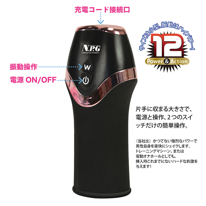 刺激的なパワーとバラエティなアクションでイカない男を目指せ!すっぽりと亀頭を覆うデザインで、その内部には無数の粒粒突起が刺激的。亀頭に被せたら、電源スイッチを教えて快感に耐えるだけ!激震によるハイパワーと、多彩なファンクションにより亀頭を徹底的に責め立てます。ただ鍛えるだけではなく、電動オナホールとしても活躍してくれるので、我慢に我慢を重ねたあとの最高の一発をお楽しみください。本体サイズ:13.0×Φ4.0cm電池:USB充電式パッケージサイズ:15.0×9.0×5.0cm