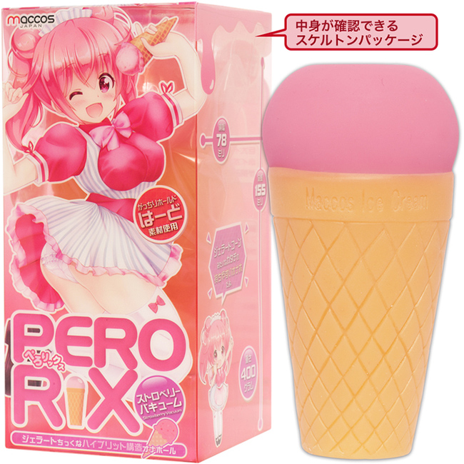「ペロリックス ストロベリーバキューム」は「ハード素材」を使用した「固めタイプ゚」の2層構造オナホールです。外側は硬い素材で内部もがっちりとホールドするハード素材がキツキツに締め、引きこまれるようなバキューム力をお楽しみいただけます。ピンクの外観で「ストロベリーアイス」そっくりな見た目の内部は「縦ヒダ゙→イボ群集→スパイラルヒダ→全面硬ヒダ」の連続するギミックを搭載。かわいい見た目に反し、多様な刺激が連鎖するハイブリッド構造の高刺激オナホールとなっています。扱いやすいミドルサイズ。ジェラートコーンを模した形状は手に馴染み、ハンドホールとして理にかなった持ちやすいフォルムです。素材は「油分排除製法」を採用し「ベタつき」や「気になる臭い」を極限カット。PERORIXはキュートな見た目でありながら、利便性と快感を兼ね備えた本格派のオナホールです。イラスト:葵カナン