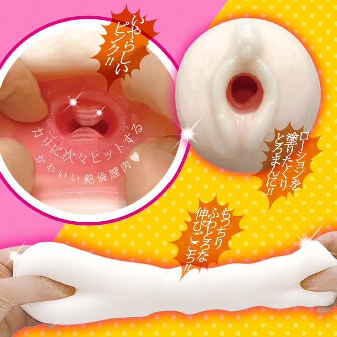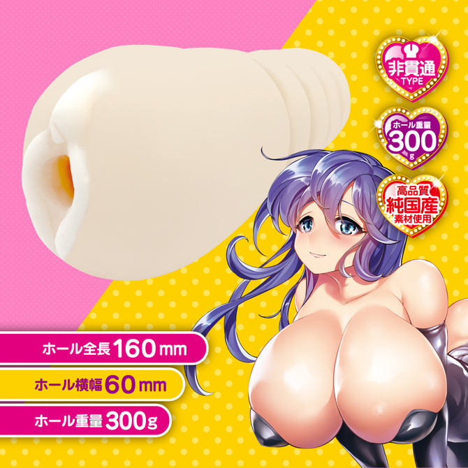 カリと尿道にヒットする、ふわとろ感触の爆乳ムスメの絶倫オナホール。くぱぁすると、かわいらしいぷりぷりした膣肉がお出迎え。ローションたっぷりでとろまん仕様になります。内部は、侵入を拒むように配置された6膣肉。順番にカリにヒットしていきます。無数の舌先のような小突起が尿道をチロチロ刺激するチロチロキッス構造も魅力のひとつ。まったりとした快感を存分にお楽しみください。本体サイズ:16.0×Φ6.0cm重量:300gパッケージサイズ:17.0×9.0×6.5cm