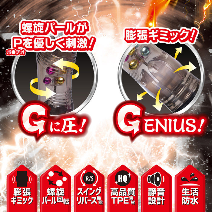 スイングピストン×膨張ギミック×ペロペロサブバイブ×螺旋パール四重特殊ギミックが徹底的に刺激する高性能バイブ。Gスポット付近で膨張圧刺激が気持ちいい!螺旋パールにピストンスイングがポルチオをガッツリ刺激。ペロペロアクションバイブがクリトリスを責め立て、スイングピストンアクションは8パターン、サブバイブアクションは10パターンを搭載。静音設計、リバース機能を搭載。圧倒的な責め系バイブです!本体サイズ:27.0×Φ3.7cm電池:単4×4本パッケージサイズ:28.1×7.8×4.0cm