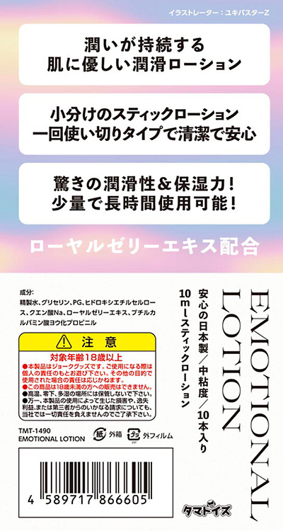 潤いが持続する肌に優しい潤滑ローション。小分けのスティックローション。一回使い切りタイプで清潔で安心。驚きの潤滑性&保湿力。少量で長時間使用可能。ローヤルゼリーエキス配合。