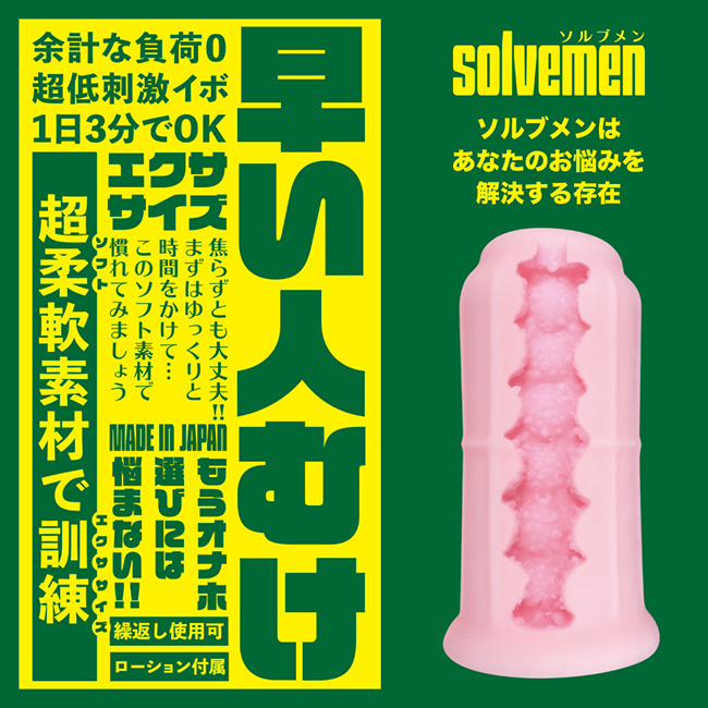 ソルブルメンはアナタのお悩みを解消する存在です。「早いひとむけ エクササイズ」は、常日頃から自分の早さに悩む方に向けた提案型お悩み解決ホール。普通のホールでは注目されにくく専用グッズが開発されにくい分野ですが、このホールなら毎日楽しみながら新しい自分へと前進する事ができるでしょう。柔らかさに包まれて毎日自分が生まれ変わっていく喜びを知ったらもう普通のホールには戻れません。あなたはオナホ選びに悩む必要はなくなります。安心安全の日本製で繰り返し何度でも利用が可能です。