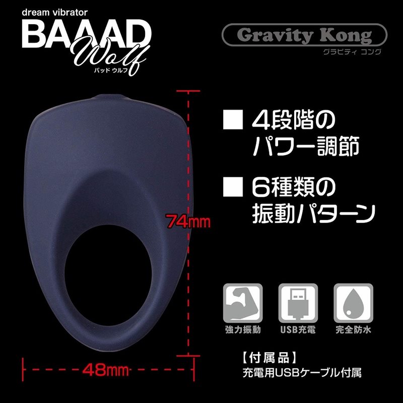 グラビティ・コングはパワフルで重たい振動が自慢。ズシリと響く様な振動が体全体に行き渡ります。4段階のパワー強弱と6パターン振動を装備し、多くの方々を満足させるのに十分なスペックを備えています。パッケージサイズ:H15.3×W8.3×D4.3cmUSB充電式シリコン素材本体サイズ 全長7.4×幅4.8cm