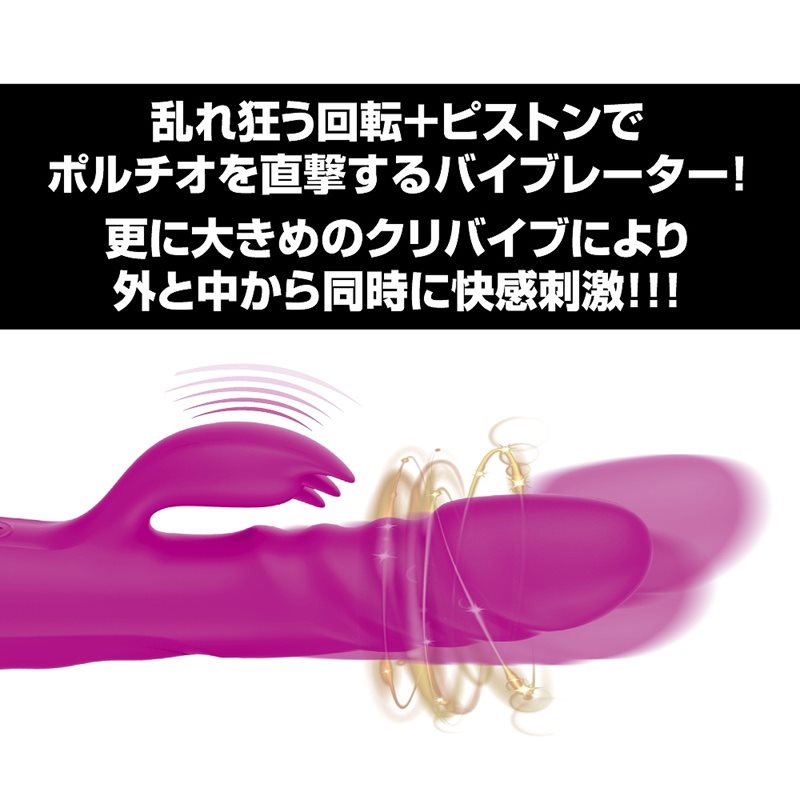 乱れ狂う回転+ピストンでポルチオを直撃するバイブレーター!大きめのクリバイブにより外と中から同時に刺激!!●4パターン回転&ピストン●12パターンバイブレーション●高品質シリコン●生活防水※充電時間:120分 連続稼働時間:50分パッケージ:22.3×9.7×5.7 cm本体サイズ:21.0×4.8Φcm総重量:370g