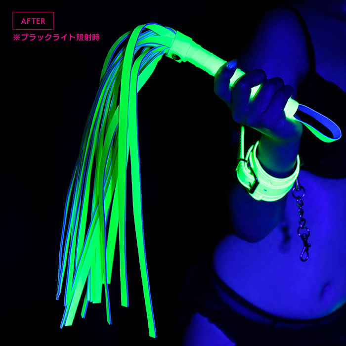 「今までになかった新しい SM 体験をあなたに。」HIKARI-SM は「蓄光素材」を使用することで、紫外線を蓄えて暗闇でボヤッと光る SM グッズです。ピンクとグリーンの2カラーで、アイマスク、口枷、手枷、足枷、バラムチの5種類をラインナップ。太陽光やブラックライトなどで蓄光して、暗闇で光ります。ブラックライトをご用意いただくことで、長時間の蓄光をお楽しみいただけます。1ステップ先のSM体験を是非お楽しみください。 ※生地の色味/発光につきましては使用環境や、光の強さで変化いたしますので、予めご了承ください。