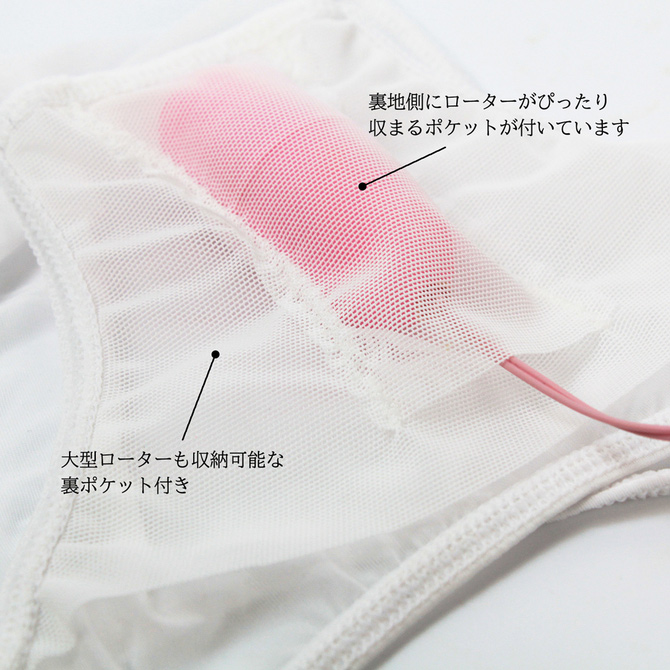 日本国内の工場で縫製され、肌触りが良く伸縮性と透明性の高い国産のストレッチ生地を使ったローターポケット付きのハーフバックショーツ。裏地側にローターがぴったり収まるポケットが付いています。大型ローターも収納可能な裏ポケット付き。※ローターは付属していません。サイズ:W58-70cm H87-95本体サイズ:縦12x横12.5x奥行1cmナイロン71% ポリウレタン29%原産国:日本
