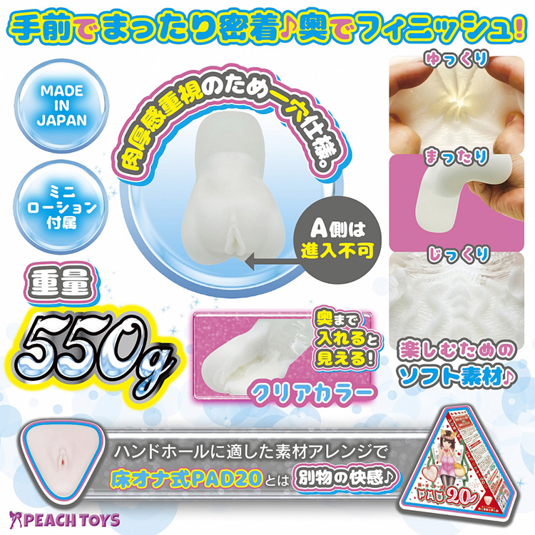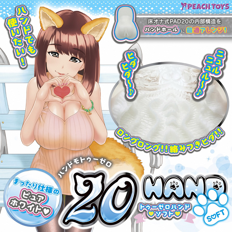 『手前でまったり密着♪奥でフィニッシュ!』まったりと楽しみたい!20HANDに白いSOFTバージョンが出たよ!!もっと柔らかく、じっくり楽しめるタイプ白い「20HAND SOFT(トゥーゼロハンドソフト」の登場です!「トゥーゼロ」内部構造とは『的確な快感ポイントにロングヒダを配置しながら、なんとも美しいヒダ模様』内部構造の良さはそのままに、まったりじっくり楽しめる!本体全長:17cm、内部長:12cm最大幅:9cm、厚み:7cm重量:640gパッケージ:9×20×11cm日本製