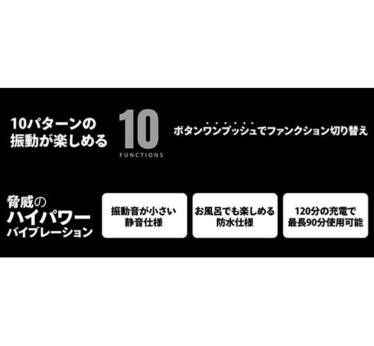 充電式超強力ローター 脅威のハイパワーバイブレーション 振動音が小さい静音仕様 10パターンの振動が楽しめる。