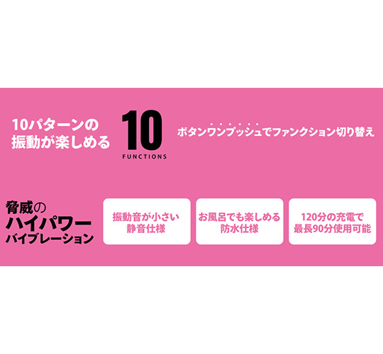 充電式超強力ローター 脅威のハイパワーバイブレーション 振動音が小さい静音仕様 10パターンの振動が楽しめる。