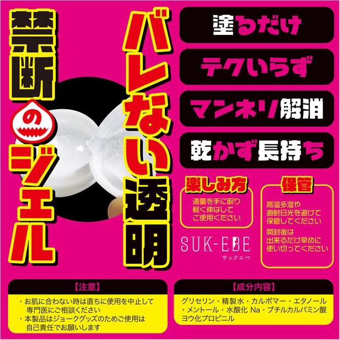 テク不要!ナカ(または男性自身)に塗るだけ!マンネリ解消に最適!女性に優しい成分配合で安心。透明でバレづらいジェルタイプ。乾きにくい仕様なので少量でも長持ちします。安心の日本産なので心行くまで乱れてください!注:体調や精神状態、個人差などで使用感が変わる場合が御座います。ご使用に関してはご自身の責任でお願いします。パッケージサイズ:14×4.5×2.2cm本体サイズ:4×4×1.8cm内容量:12g