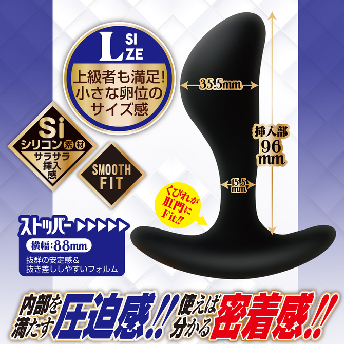抜群のフィット感!!前立腺を圧迫&密着。前立腺をプッシュするたまご型ヘッドで、拡張&開発。サラサラシリコン素材で挿れ心地なめらか。お尻へのフィット感抜群なので、挿れっぱでもOK♪ストッパーは安定感抜群のフォルムなので、抜き差ししやすく扱いやすい!!使えばわかる挿れ心地・・・エネマプッシュでレッツ尻トレ♪【Lサイズ】上級者でも大満足の、小さな卵並みのサイズ感。本体サイズ:78.5×8.6×8.6cm重量:585gパッケージサイズ:13.0×9.0×4.0cm本体サイズ:全長11.8×挿入部全長9.6×太さ3.55cm重量:91g材質:シリコン