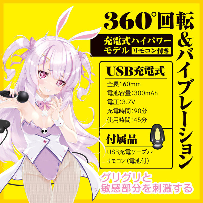 パッケージサイズ:H19.0×W9.2×D4.8cm 本体サイズ:全長16.0×3.5×3.5cm 重量:110g 付属品:USB充電ケーブル(65cm)、リモコン:6.5×3.8×2.0cm(電池付) イラスト:夢伽りあん/雪乃ん
