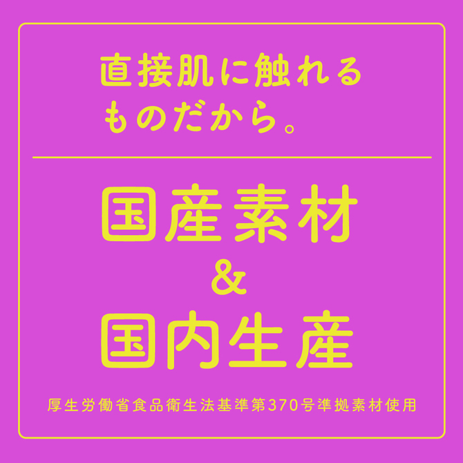 むにゅむにゅもっちり。覚醒型新素材【GROW UP SKIN】は使うほどにあなたに馴染んで成長する人肌感触の高弾力素材です。 直接肌に触れるものだから安心の国産素材&国内生産 MADE IN JAPAN。