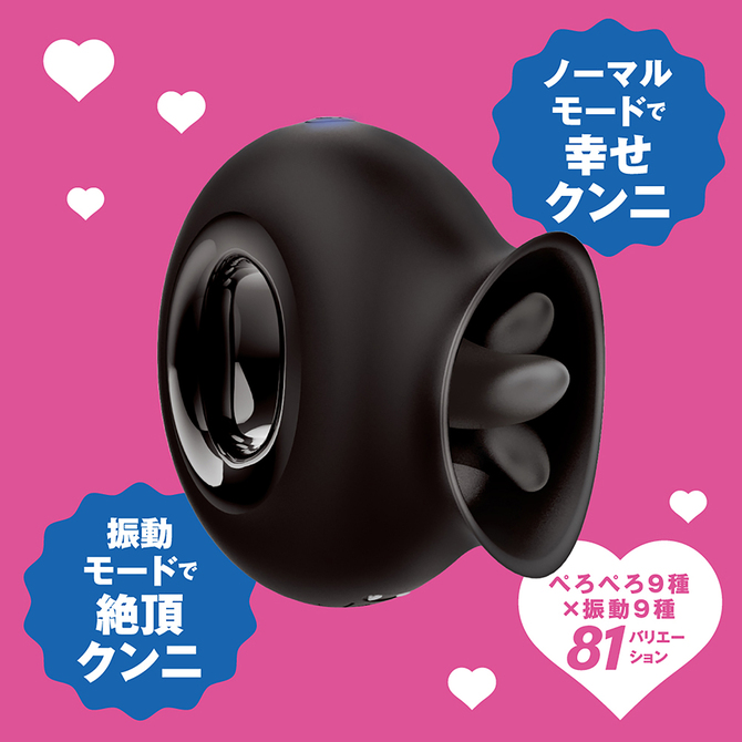 超・愛を感じる舌舐めローター!ぺろぺろ9パターン × 振動9パターンの全81バリエーションの超絶テクニック!ノーマルモードで幸せクンニ!振動プラスで絶頂クンニ!持ち手は、使い勝手抜群のリングタイプ。ひとりでも、ふたりでもいろんなシチュエーションで使いやすいです。さらさらなめらか優しい肌触りの高品質ソフトシリコンを使用しています。震えるリアル舌に絶対絶頂!