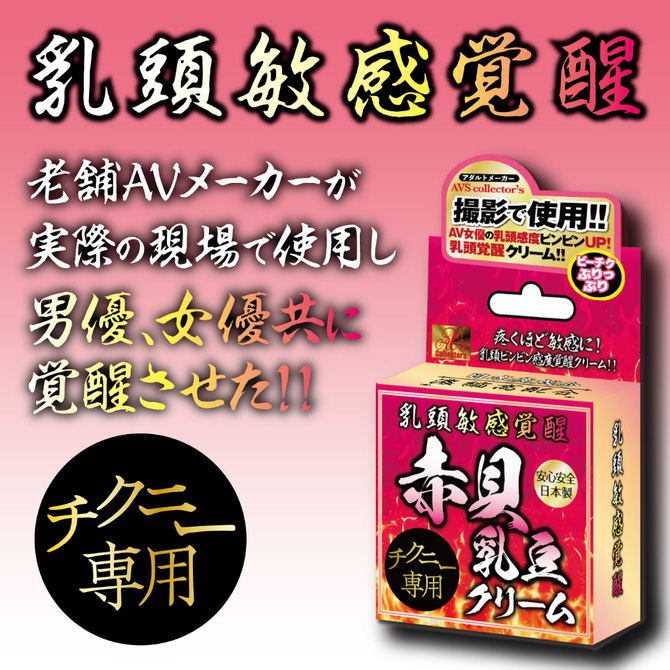 メーカー撮影ご用達の乳首ピンピンアヘアヘ悶絶必至の乳首専用クリーム!男も女も乳輪…乳頭…適量をひと塗り丁寧にマッサージをすればコリコリビンビン乳首は疼き快楽ヒクつき乱れる。安心安全の日本製。 パッケージサイズ:H6×W6×D3cm内容量:10g