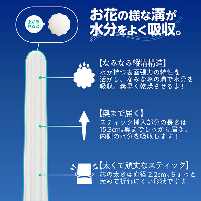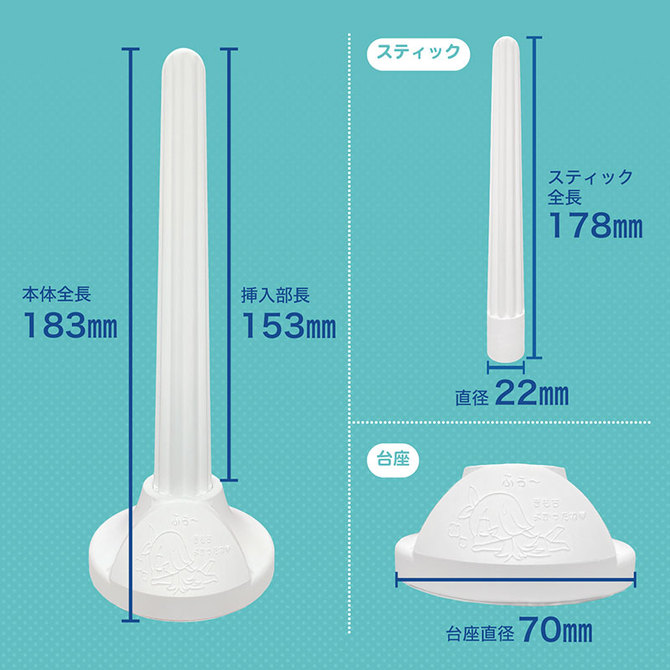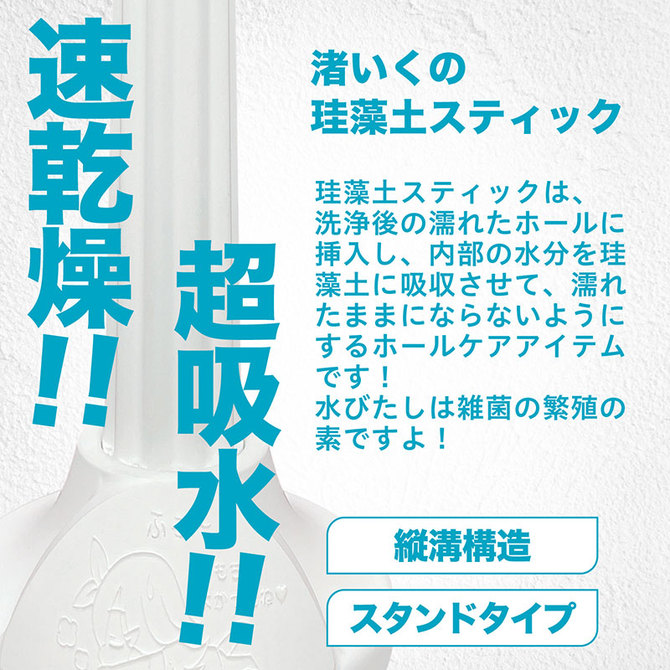 いくのが仕上げてくれる珪藻土スティックオナホの洗浄後の水分を強力吸引しれくれる必須アイテム。今回のアイテムも皆でたくさん試して、数回失敗作もできたりして、時間がたくさんかかっちゃったけど諦めずこだわって作った自慢の一品です。これでしっかりアフターケアして、ずっといくのを愛し続けてくださいね。パッケージサイズ:H23.5×W8.6×D8.6cm長さ:本体全長:18.3cm スティック全長:17cm直径:スティック直径:2.2cm 台座直径:7cm