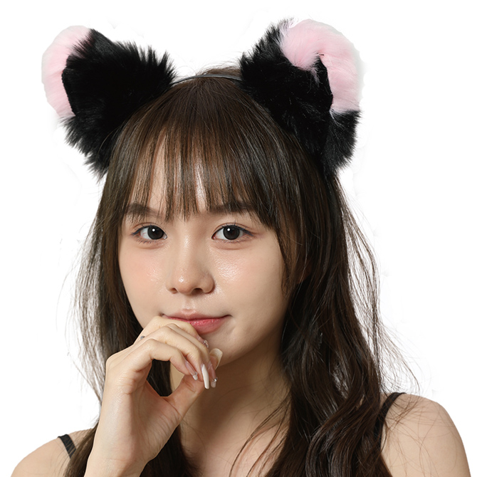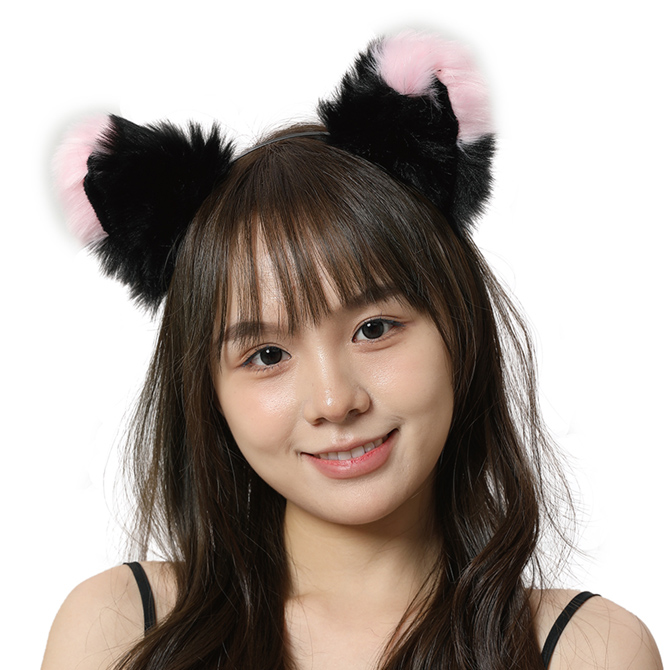 エロコス もふもふ耳カチューシャ 黒/ピンク