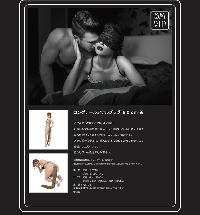 ふわふわした80cmながい尻尾!可愛い彼女を小悪魔ちゃんにして調教したい方にオススメ!大人可愛いワイルドな女狐コスプレにも最適です。プラグ部分は小さく、挿入しやすく初めての方でも安心してお使いいただけます。色々なプレイをお楽しみ下さい。本体サイズ尻尾:長さ 約80cmプラグ:直径 約2.7cm長さ 約4.0cm