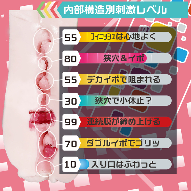 イラストレーターに玉乃井ぺろめくり先生を迎えた疑似ちつ狭穴フィニッシャーは、巨大イボ!膜!狭穴!?搭載の贅沢な仕上がりになりました。起承転結を感じるの様々な刺激、全長165mm本体重量310gの扱いやすさと外装表面をエンボスのようなザラつき加工を行う事で握りやすく滑り止め効果もあります。厚生労働省食品衛生法基準第370号準拠素材を使用しローションも付属しています。本体サイズ:16.5×5.7×6.0cm 内部長12.5cm重量:310g付属品:ローション