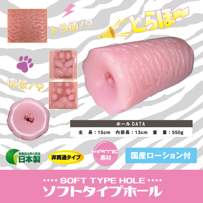 みんなも一緒にとらほ〜しよう♪3方向から包み込むコブヒダが上下からのイボ刺激とウラスジはv字型突起が刺激、そして先端を不規則な突起で刺激します★パッケージサイズ:H20.5×W13.5×D7.5cmm本体サイズ:全長15.0cm 重量:550g付属品:ローション