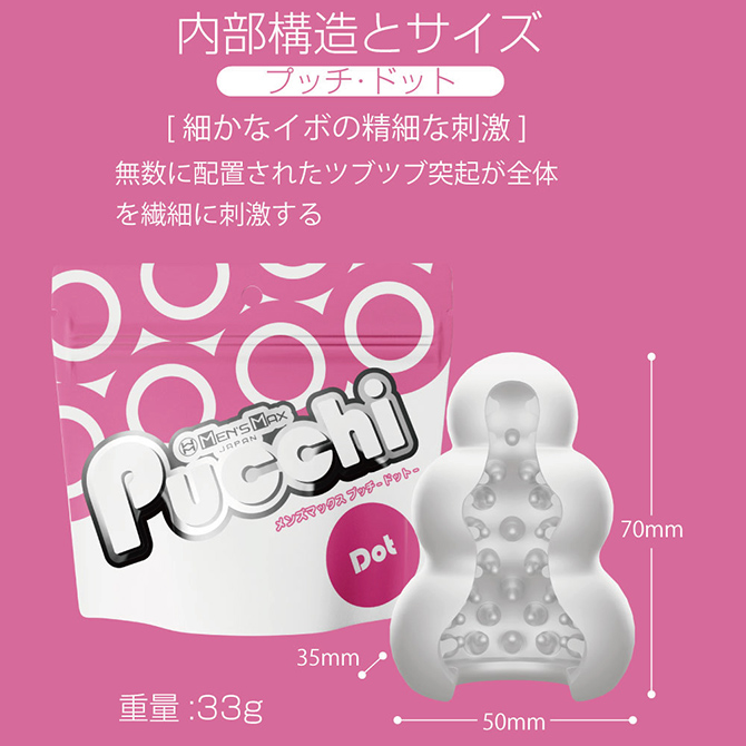 ローションいらずのオナホール!プラスウェッチは独特開発の新素材。なんと水だけでねっとり潤う魔法のようなオナホール。水をつけて軽く擦ることで、内部に超ミクロサイズで閉じ込められた「潤いゼリー」が水に反応し、沁みだし、樹脂表面をねっとりと潤い包み込みます。12種類ありますので、好みの感触を探してみて♪「Dot(ドット)」は無数に配置されたツブツブ突起が全体を繊細に刺激します。パッケージサイズ:14×12.8.×5.5cm重量:33g本体サイズ:7×5cm