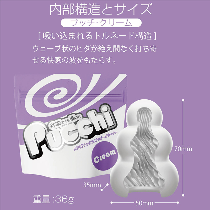 ローションいらずのオナホール!プラスウェッチは独特開発の新素材。なんと水だけでねっとり潤う魔法のようなオナホール。水をつけて軽く擦ることで、内部に超ミクロサイズで閉じ込められた「潤いゼリー」が水に反応し、沁みだし、樹脂表面をねっとりと潤い包み込みます。12種類ありますので、好みの感触を探してみて♪「Cream(クリーム)」は斜めに擦り上げてくるヒダがクリームのように昇りつめる絶頂感を味わえます。パッケージサイズ:14×12.8.×5.5cm重量:34g本体サイズ:7×5cm
