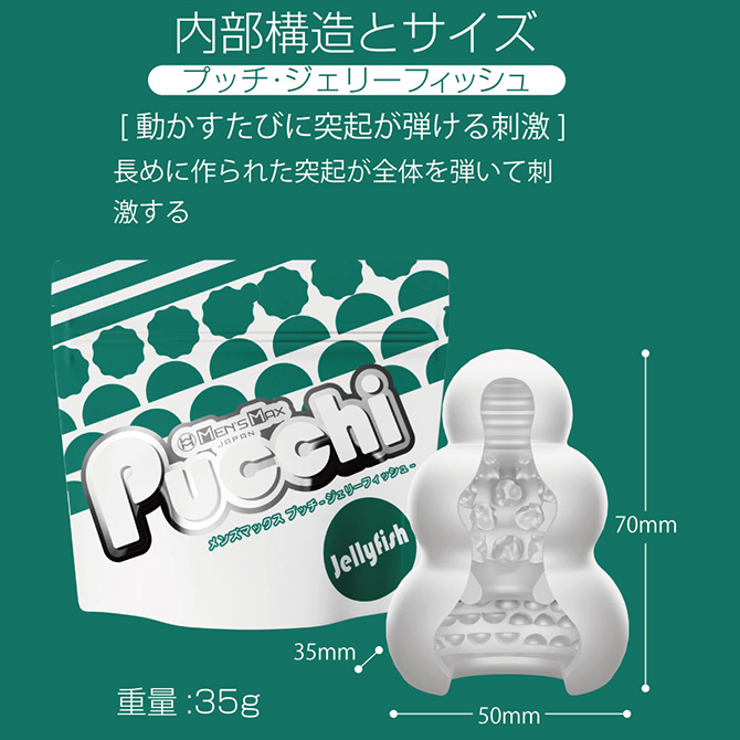 ローションいらずのオナホール!プラスウェッチは独特開発の新素材。なんと水だけでねっとり潤う魔法のようなオナホール。水をつけて軽く擦ることで、内部に超ミクロサイズで閉じ込められた「潤いゼリー」が水に反応し、沁みだし、樹脂表面をねっとりと潤い包み込みます。12種類ありますので、好みの感触を探してみて♪「Jullyfish(ジュリーフィッシュ)」は長めに作られた突起が全体を弾いて刺激します。パッケージサイズ:14×12.8.×5.5cm重量:35g本体サイズ:7×5cm