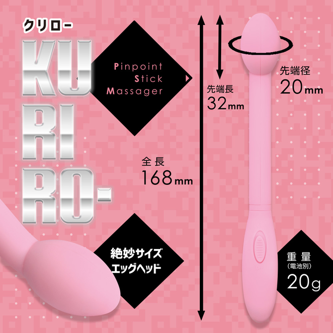 スマートな形状に握り易い小径の持ち手、使い勝手の良いスライドスイッチで手軽にプレイ!肌触りと当て心地にこだわったマットコーティング加工に先端マイクロモーターで乳首やクリを優しく的確に責め放題。本体色:ピンクパッケージサイズ:5.2×19.5×2.4cm本体サイズ:2φ(最大径)×16.8cm商品重量:20g